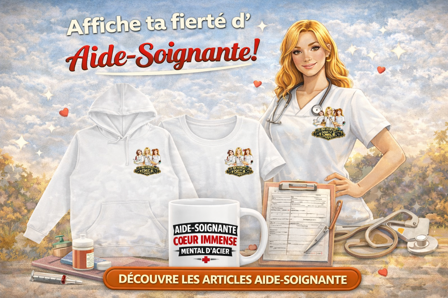 Hoodie Aide-Soignante – Cœur Immense, Mental d’Acier | Hoodie Cadeau Soignante